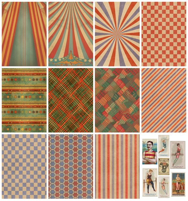 The background papers and the images of the circus artists have some vintage feeling that matches the story from the late XIX century so well.